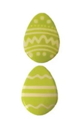 These festive Easter egg confections are crafted from smooth white chocolate with vibrant green print detailing for a cheerful seasonal touch. Each egg features decorative patterns including stripes, zigzags, and polka dots, making them perfect for Easter baskets, dessert tables, and spring celebrations. The creamy white chocolate base pairs beautifully with the bright yellow design for an eye-catching and delicious treat. Ideal for gifting, party favors, or bakery displays, these decorated white chocolate eggs add a sweet pop of color to any holiday spread.