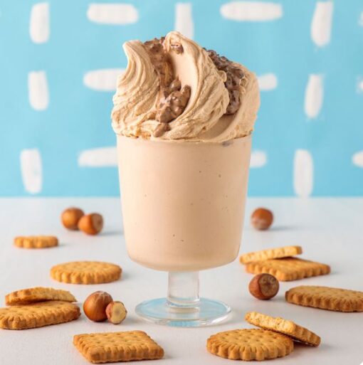 Can a variegate be moreish and sugar free at the same time? Well, of course! And Arabeschi® Hazelnut Biscuit Zero is proof of that. This new anhydrous hazelnut sauce with no added sugars (it naturally contains sugars) is sweetened with Stevia and has crunchy inclusions of cocoa cookies to create a unique sensory experience. An ingredient that satisfies the most persistent sweet cravings, but without putting too much on the line.