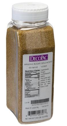 Top off sweet birthday treats or match a variety of holidays and occasions with this shimmering gold sanding sugar, perfect for the finishing touch. Kosher. 33 oz. handheld container.