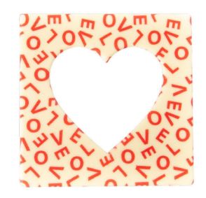 Add a bold and romantic statement to your desserts with these white chocolate Valentine’s decorations featuring a heart-shaped cutout and red “LOVE” print. Perfect for cakes, cupcakes, chocolates, and plated desserts, they offer a modern, eye-catching design ideal for Valentine’s Day creations. Made from smooth white chocolate with decorative cocoa butter detailing, these edible accents combine sweetness with style. A unique finishing touch for bakeries, special events, and Valentine’s treats.