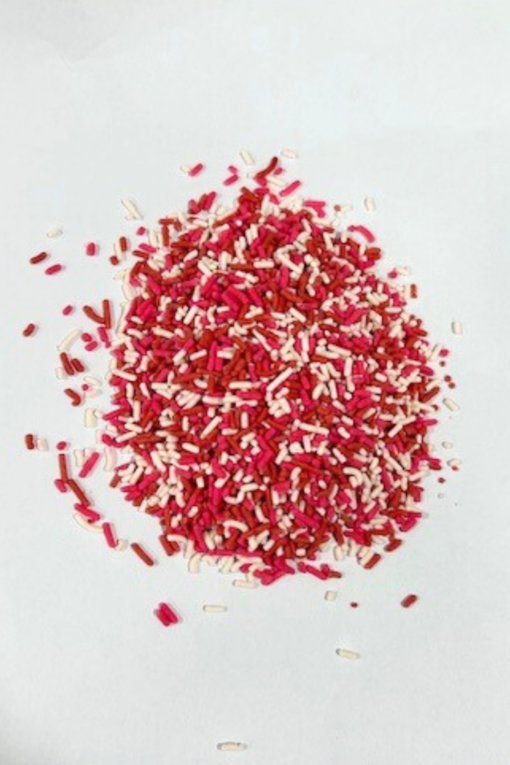 Add a romantic pop of color to your baked creations with this festive Valentine’s Sprinkle Mix. Featuring a charming blend of white, pink and red jimmies which is it’s perfectly ideal for decorating cakes, cupcakes, cookies, and Valentine’s Day treats. Beautifully balanced in color and shine, it’s an easy way to create eye-catching desserts for celebrations, parties, and gifting.