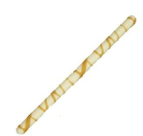 White chocolate sticks printed with gold lines: These 2D sticks are slick and elegant to add as a finishing touch to your desserts and cakes.